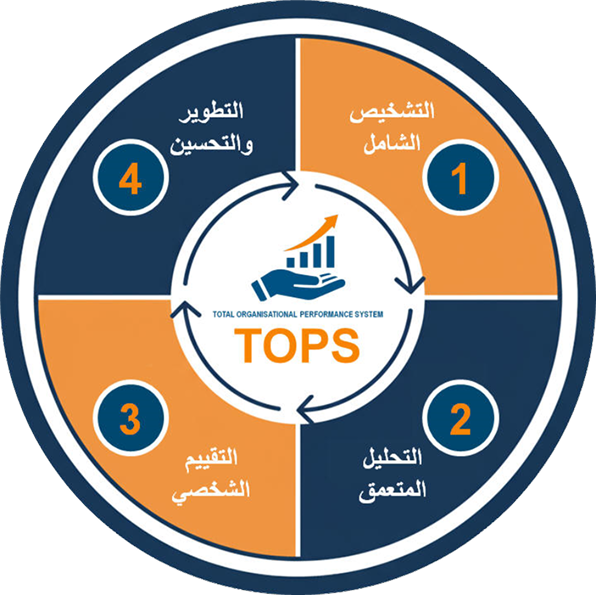 تتضمن منظومةTOPS أربع مراحل: التشخيص الشامل، والتحليل المتعمق، والتقييم الشخصي، والتطوير والتحسين.